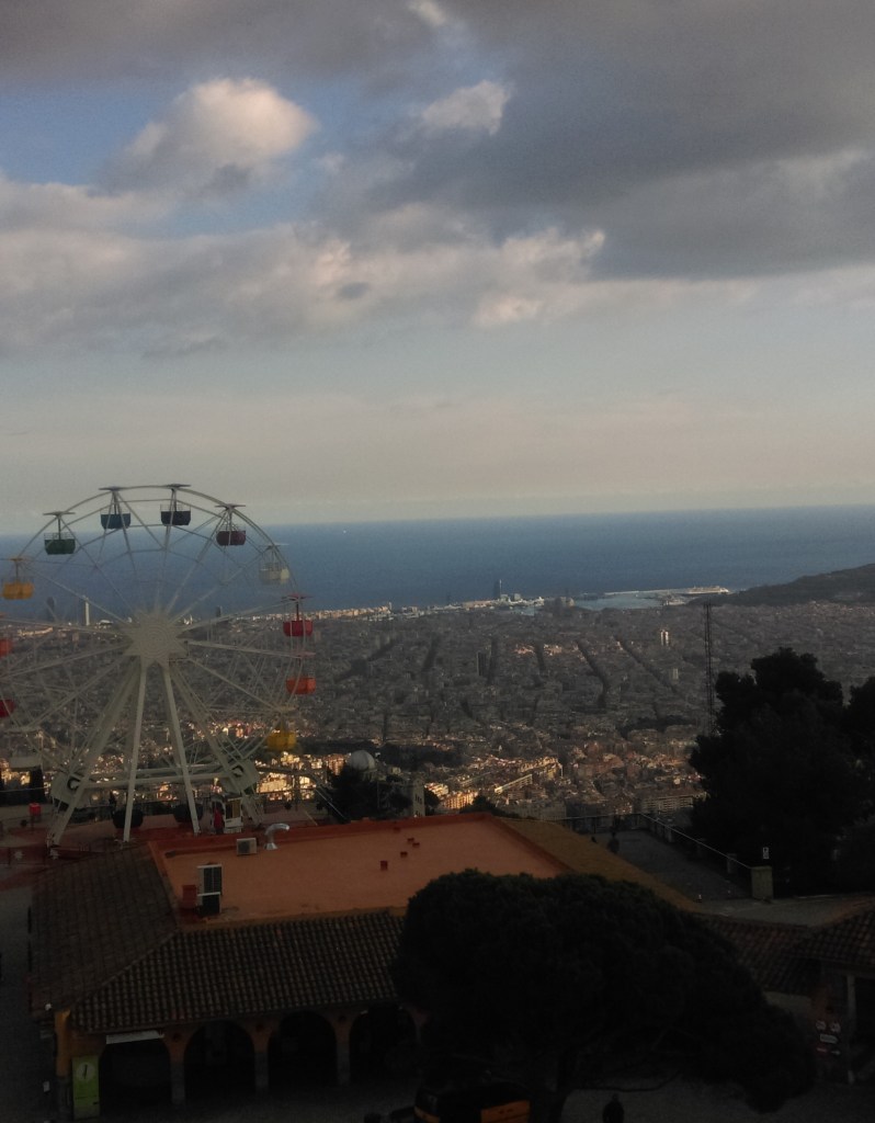 The last bit of sightseeing I did started with getting on the bus 111. Our destination was the hill Tibidabo from which you have a stunning view over the entire city. We weren’t even 400 meters above sea level and already had amazing views out onto the ocean, the port and the thousands of rooftops. I also loved seeing the beautiful, small churches on top of the hill and the tiny, colourful amusement park.