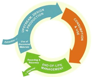 Wenn also Milka weiterhin die Schokolade in Plastik verpacken möchte, müssen sie die Verpackungen zurücknehmen und sie zu neuen Verpackungen recyclen oder einen anderen Verwendungszweck dafür finden bzw. die Entsorgung (Gelber Sack) mit saftigen Summen unterstützen. Unternehmen mit ähnlichen Endprodukten können sich zusammenschließen und so den Produktlebenszyklus verlängern.
