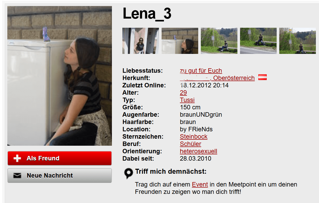 Heute navigiere ich durch die Website und werde von den alten Profilen meiner Zeitgenossen empfangen. Es ist eine ziemlich tote Plattform, mit für die Zeit typischen Selfies von Teenagern, neben denen die Altersanzeige einfach weiterlief. Unter dem schwarz-weiß Bild einer 10-jährigen mit Emo-Frisur steht schnuqqiii_bearli (29) und ich frage mich, wo die Person nun ist.